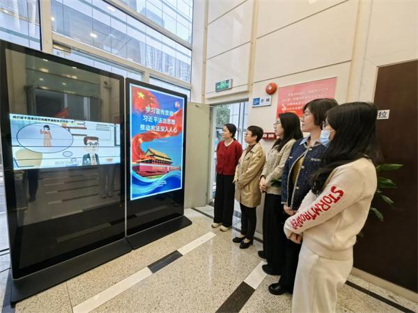 審計署西安特派辦采用多種宣傳方式,深入推進憲法學習與宣傳。開展“憲法進社區”街頭普法活動,組織普法志愿者向社區居民普及憲法知識、發放憲法讀本等相關資料,引導群眾尊法學法。在辦公樓公共區域設置“憲法宣傳周”主題展板,組織干部學習習近平法治思想以及憲法精神,強化依法審計意識。同時,利用辦網站和辦公樓公共顯示屏播放憲法主題公益短片與法治標語,營造濃厚法治氛圍,進一步提升了干部職工的法治素養和依法履職能力。