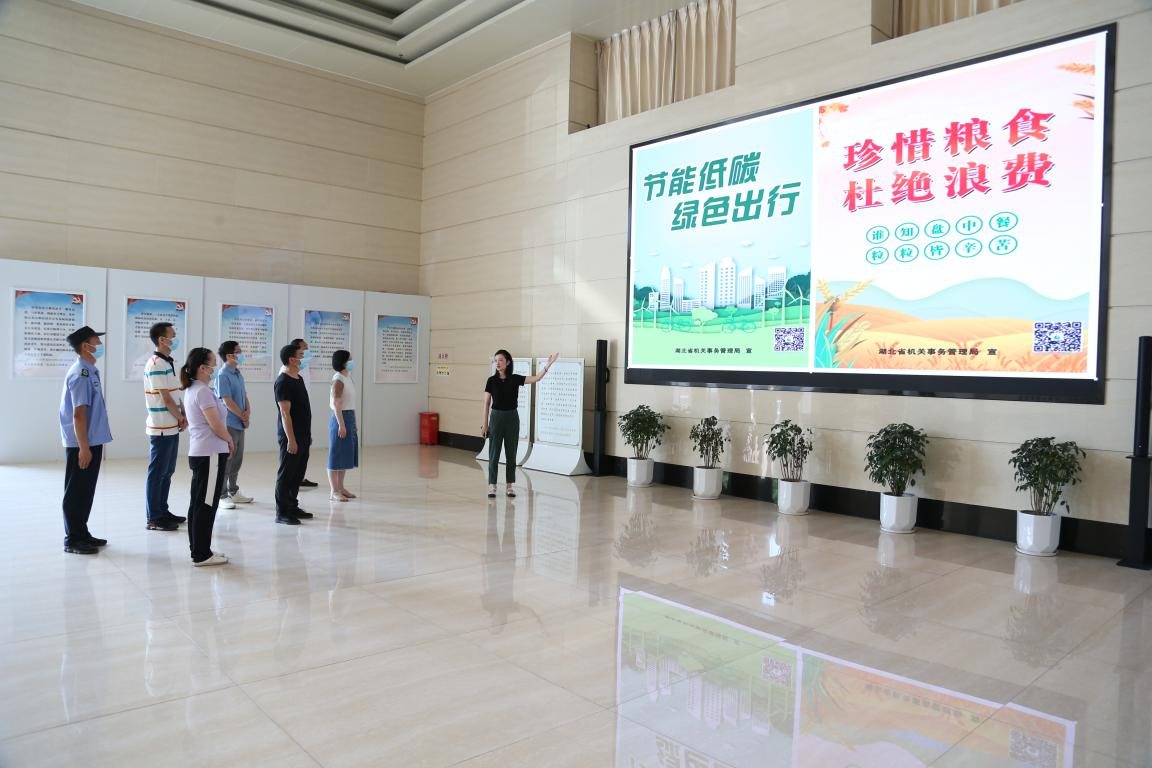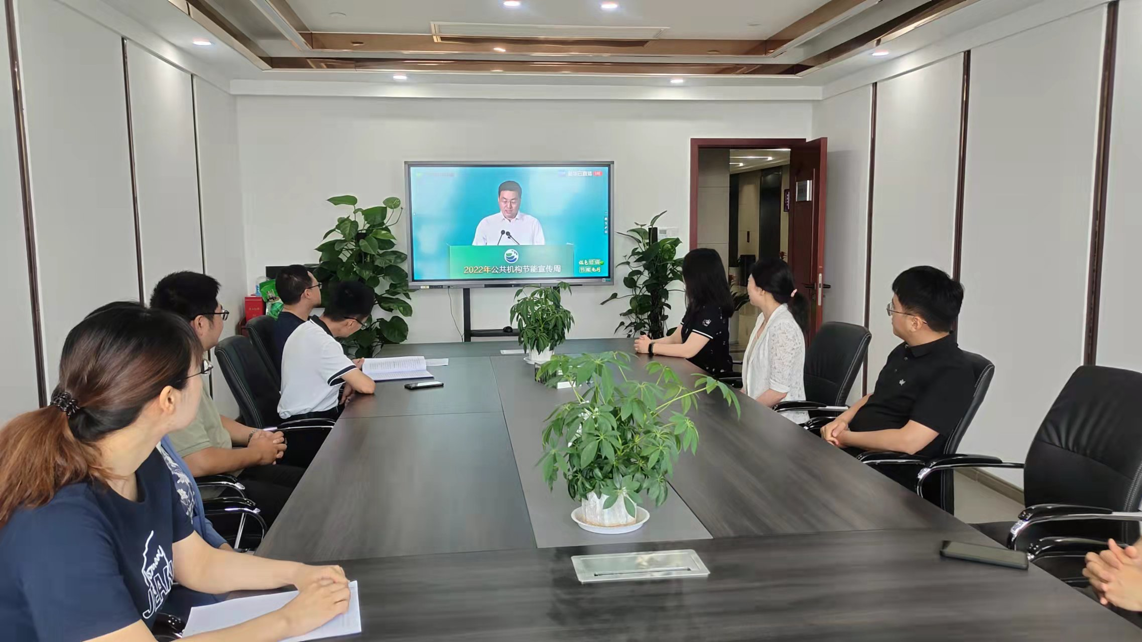 江蘇省審計廳積極宣傳節能環保、綠色低碳理念,營造節能降碳濃厚氛圍,持續增強全體審計人員節能意識,圖為審計人員正在觀看廳電子大屏播放的“節約用水”節能環保宣傳片。