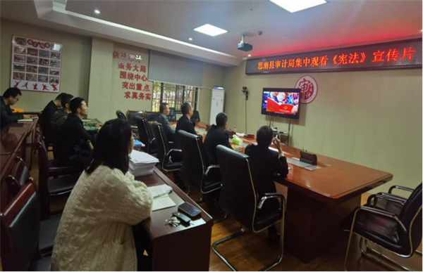 思南縣審計局通過黨組會、中心組學習會、干部大會等,開展憲法專題學習,集中觀看憲法宣傳片。局領導班子成員結合分管工作,圍繞習近平法治思想開展專題研討,引導干部認真履行好審計監督職責。