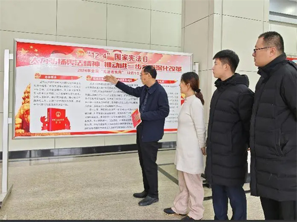 審計署哈爾濱特派辦圍繞“12·4”國家憲法日開展普法宣傳。組織全體審計干部觀看“憲法的精神 法治的力量——2024年度法治人物”專題節目、參與憲法知識網上競答活動。通過制作國家憲法日主題展板、滾動播放憲法宣傳短片等形式,深入學習宣傳貫徹習近平法治思想,增強全辦干部的法治意識。組織學習憲法、民法典、審計法及其實施條例等法律法規。各黨支部、各審計組在審計現場,通過線上線下學習研討、主題黨日活動、主題聯學等方式,組織黨員干部結合當前審計項目實際開展學習交流,分享學習心得體會。