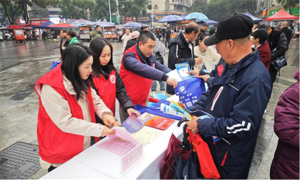 榮昌區審計局在區人民廣場開展憲法宣傳活動,向居民發放法律宣傳手冊,并現場為群眾講解社會保障、退休養老、教育醫療等民生政策,引導群眾增強法治思維,學會運用法律依法維護合法權益。