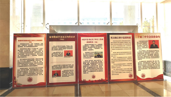 安徽省審計廳舉辦法治文化展覽。圍繞習近平法治思想、黨的二十屆三中全會關于法治的論述、憲法的主要內容、審計法律制度體系、黨中央關于審計工作的重要部署、安徽審計法治建設等六部分,圖文并茂地展示我國法治建設的偉大成就和安徽審計機關加強審計法治建設的生動實踐。