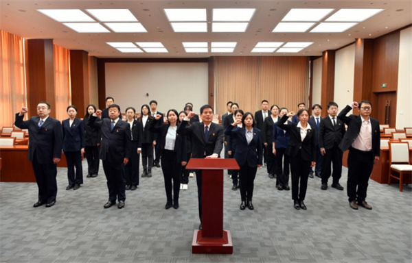 北京市審計局舉行新任處級領導干部憲法宣誓儀式。7名新任處級領導干部依法向憲法莊嚴宣誓,18名新入職干部觀摩宣誓儀式。宣誓儀式現場莊嚴肅穆,宣誓臺上擺放著《中華人民共和國憲法》,全體人員齊唱中華人民共和國國歌后,宣誓人面向國旗,右手舉拳,作出忠于憲法、忠于祖國、忠于人民的承諾。