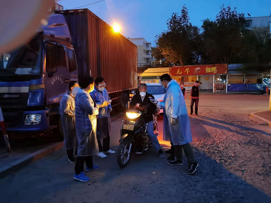 近日,新冠疫情肆虐北國江城吉林,吉林省吉林市審計局第一時間成立黨員工作突擊隊下沉街道社區,積極參與疫情防控,充分發揮審計機關基層黨組織戰斗堡壘和廣大黨員先鋒模范作用。圖為審計人員對過往的車輛和人員進行細致排查。(卜偉 劉大勇)