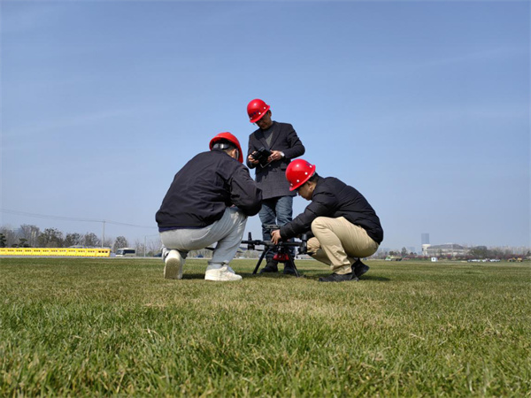 圖為合肥審計人員利用無人機勘測園林綠化施工現場