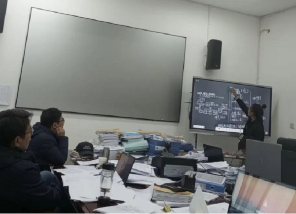 趙雪艷(左二)與同事們討論交流審計項目