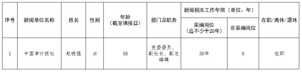 中國審計報社關于擬申報資深新聞工作者榮譽證書和證章人員的公示